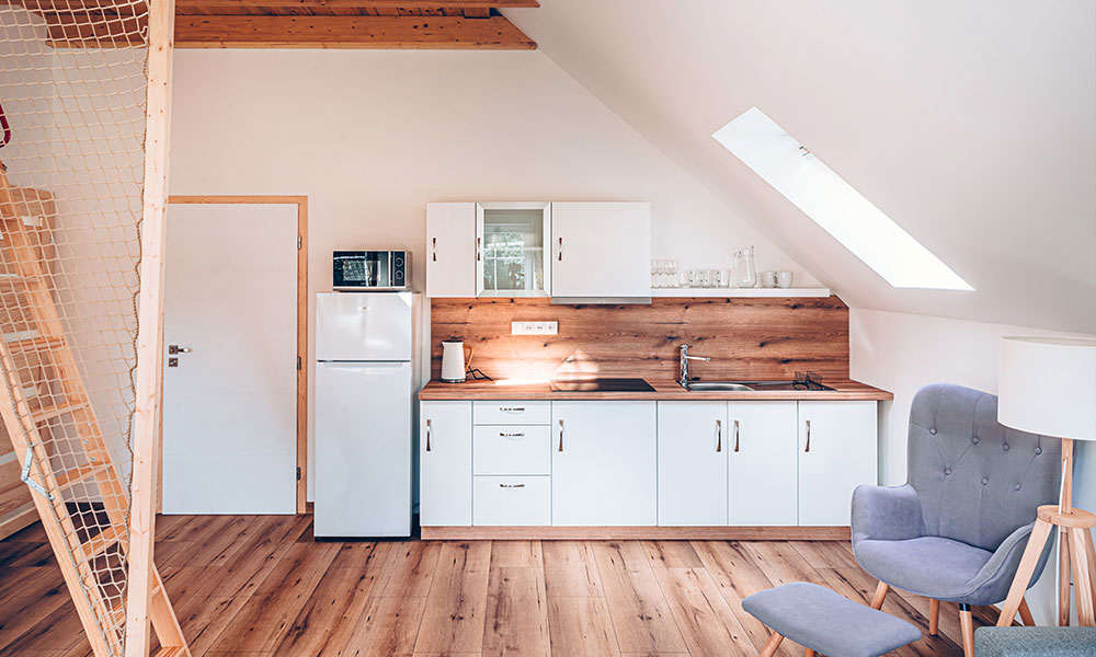 2 podkrovní apartmá s manželskou postelí a dalšími lůžky